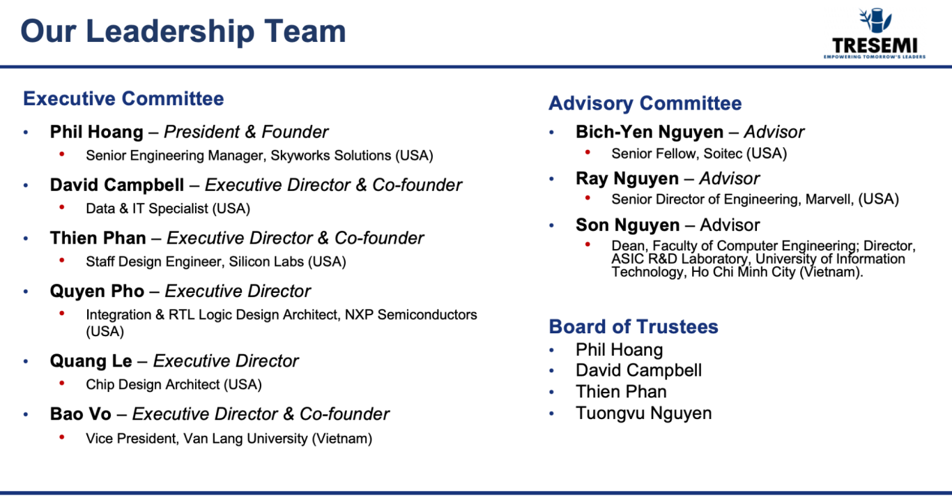 Tresemi is a non-profit organization powered entirely by volunteers who are passionate about bridging the talent gap in the semiconductor industry. Our diverse team brings together professionals from leading companies, educators from academic institutions, and other dedicated individuals with a shared mission to develop a sustainable and skilled workforce.